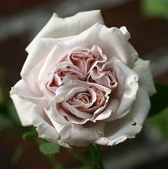Цвет этой розы совершенно необычный. Кисти махровых цветков представляют собой смесь синевато-серого, пепельного и сиреневого с сливочно-коричневым румянцем. Цветки крупные, красивой формы, густомахровые, цветение однократное, очень обильное. Куст сильнорослый, хорошо облиственный, довольно колючий. Быстро нарастает после посадки. (IER)