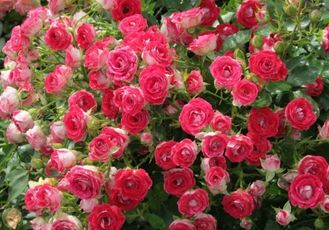 - Компактный куст, быстрый рост, обильное цветение весь сезон, листва темно-зелёная глянцевая, прекрасная устойчивость к болезням (Rosebook).
