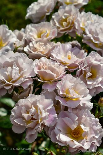 Оттенки кофе со сливками, серебристо-пепельные. Нежный аромат. Цветы средне-крупные, махровые, в соцветиях. Цветение продолжительное в течение сезона. Кусты средние, округлые, прямостоячие, хорошо разветвленные. Высота от 105 до 120 см. Ширина от 90 до 120 см.(Rosebook)