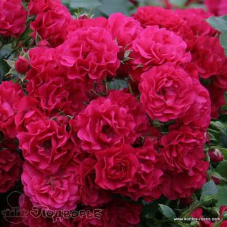 Сорт превосходно подходит как для частных садов, так и посадок в общественных местах. Любой садовод будет доволен этой новинкой. Цветки клубнично-красные, мелкие, густомахровые, в кистях, очень устойчивы к дождю, не голубеют. Листва темно-зеленая, блестящая, мелкая. Не пахнет. Куст широкий, ветвистый, одинаковой ширины и высоты. Сертифицирована по системе ADR в 2001 г. (KOR)