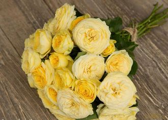 Густомахровые, ностальгической формы, насыщенно-жёлтые цветки с лёгким ароматом.
