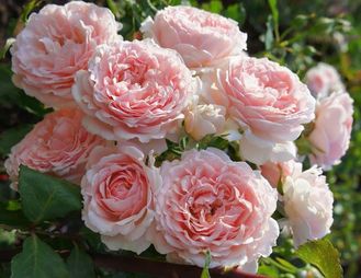 Энергичный мощный куст, усыпанный крупными связками великолепных розовых цветов. Ее волнистые розовые лепестки (26-40 шт) с легким коричневатым оттенком засахаренного миндаля излучают свет и подобны тончайшему фарфору. Цветение непрерывное в течении сезона .