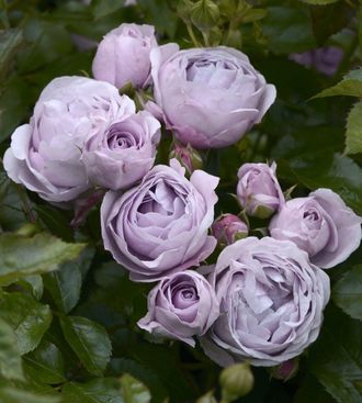 Цветы в нежных и загадочных лавандовых оттенках появляются на кусте маленькими группами (по 3-5 шт.) Цветок махровый, диаметром 6-7 см. Аромат лёгкий. Цветение повторное, в течение всего сезона. Куст густой, прямостоячий, высотой 60-90 см. Ширина куста 50 см. Листва с высокой устойчивостью к заболеваниям.