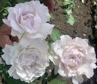Роза японской селекции SAPHIRET - выведена Джунко Кавамото (Junko Kawamoto). Чайно-гибридная роза с махровыми среднего размера ароматными цветками. Белые с розовым оттенком и бледно-фиолетовые к центру лепестки цветка, сравнимы со светом софита из античного стекла. Высота куста 0,8 - 1,2 м.