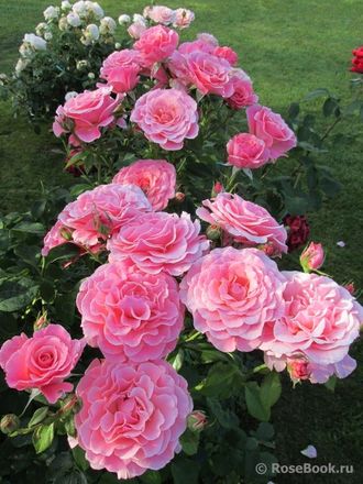 Цветки розовые, с лепестками, аккуратно уложенными "черепицей", с красивыми, более тёмного цвета, прожилками на лепестках. Хорошо переносит дождь. Цветение повторное, почти непрерывное, одиночное или в кистях. Куст пушистый, с глянцевой листвой, устойчивой к заболеваниям.