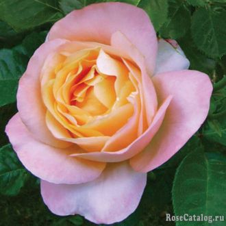 Крупные нежно-желтые цветки с розовыми затенениями и оттенками персика, с мягким, фруктовым ароматом, из 30-32 лепестков. Куст вертикальный, компактный, с темно-зеленой листвой.