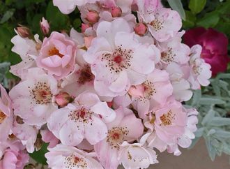 Мускусный гибрид: светлые бутоны абрикоса раскрываются до теплого белого цвета. Осень: бутоны абрикоса раскрываются до теплого розового цвета. Красный глаз. Отсутствие мягкого аромата, до 7 лепестков. Средний диаметр 1,75 дюйма. От маленького до среднего, одиночные (4-8 лепестков), цветут большими гроздьями. Цветение обильное, непрерывное (вечное) в течение всего сезона. Заостренные бутоны.