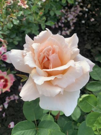 Чайно-гибридная роза нежно персикового цветакрая лепестка немного светлее, слегка гафрированные.
