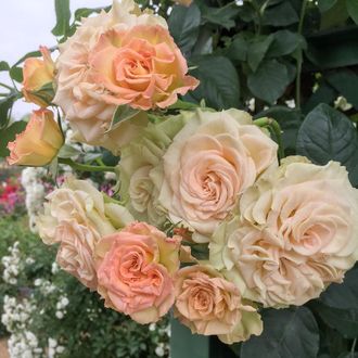 В начале цветения цвет коричневатый и кремово-бежевый, но со временем меняется на бледно-абрикосовый или розовый. Лепестки плотные, а обращенные вверх цветки цветут около недели, меняя окраску. Эта роза с продолжительным периодом цветения, поскольку она медленно разворачивает свои волнистые, лепестки и меняет цвет на кремово-бежевый. Диаметр цветка: средний. 6-7 см. Количество лепестков: 70. Шипов почти нет, ветки гибкие и с ними легко обращаться.